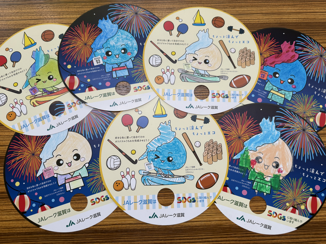 SDGsへの取り組みの一環として、当JAのPRを兼ねたオリジナル丸うちわをJA共済の地域活性化積立金を活用し制作しました。管内各支店や直売所のイベントなどで組合員、利用者に配布しました。