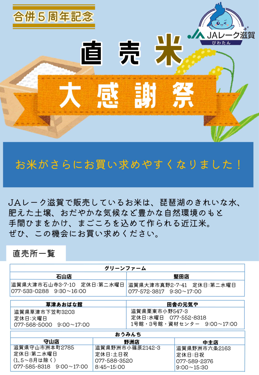 合併5周年記念!! 直売米「大感謝祭」