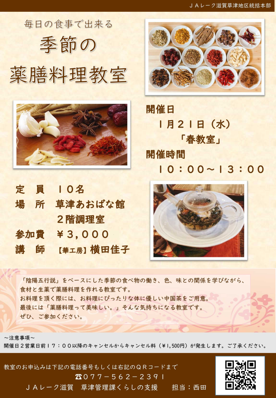【草津地区】参加者募集!! 季節の薬膳料理教室/1月21日(水)