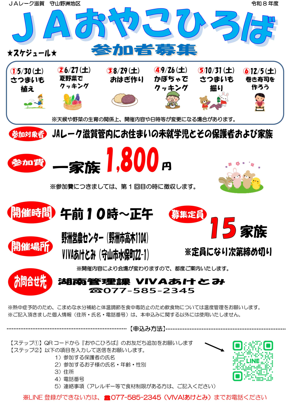 【守山野洲地区】参加者募集!! 「おやこひろば」/5月~12月